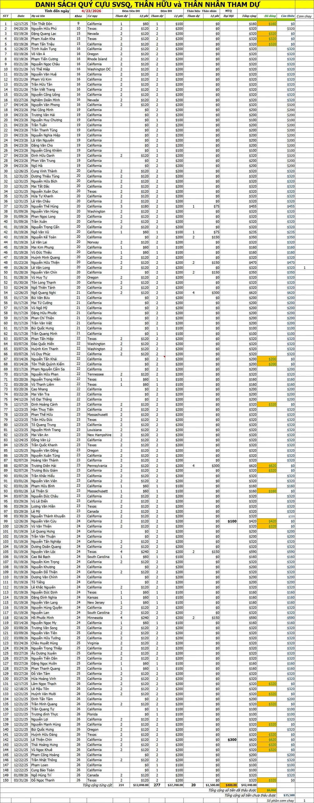 Gần 800 cựu SVSQ/HQ Nha Trang , gia đình và thân hữu tham dự